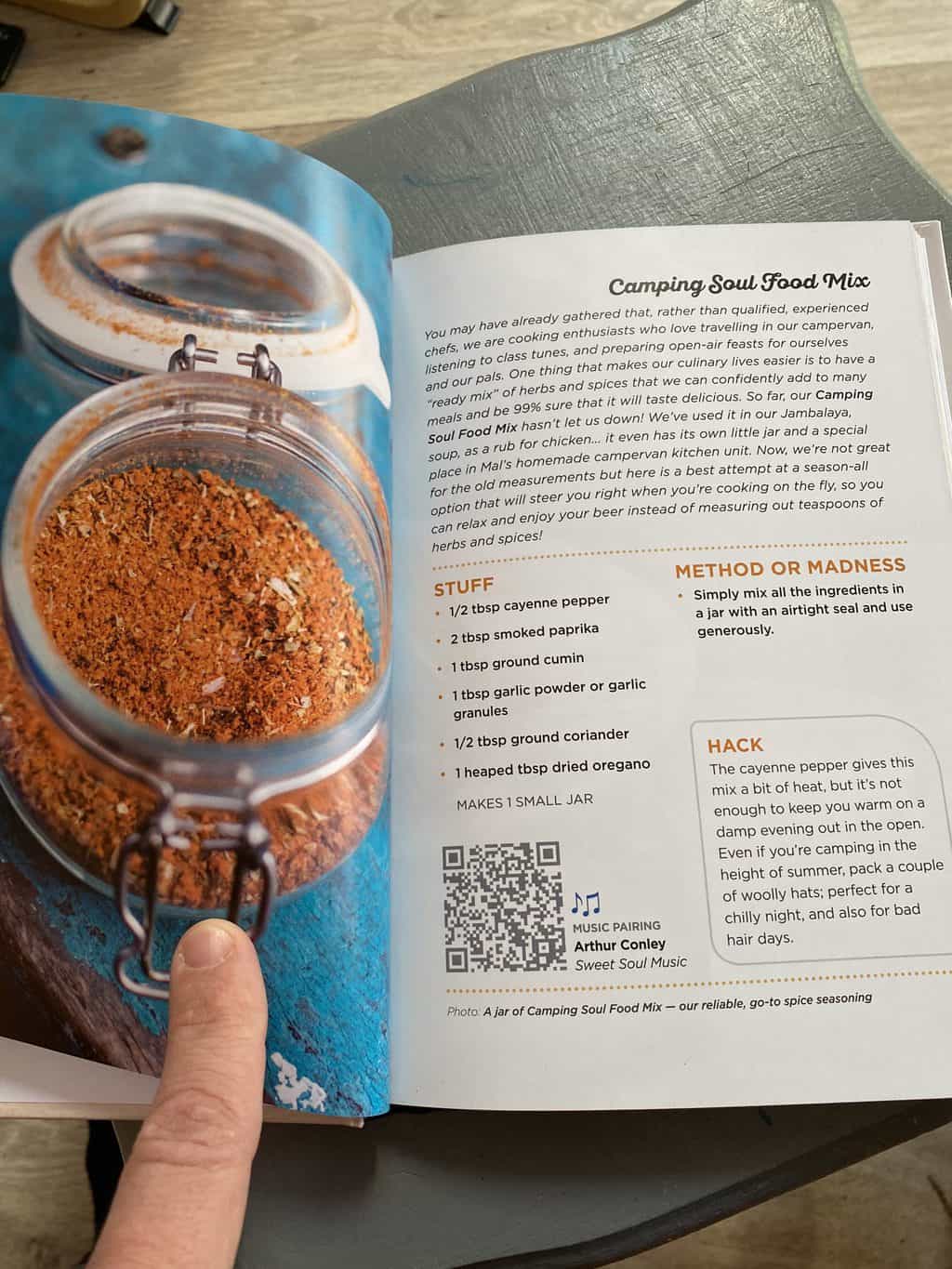 Camping Soul Food is a handy A5 hardback printed in Ireland. With 64 meals that can be cooked anywhere adventure takes you. Each recipe is paired with a Soul song and playlist to listen and dance to while you prep and cook. Also includes cooking tips and camping hacks to reduce packing and waste.