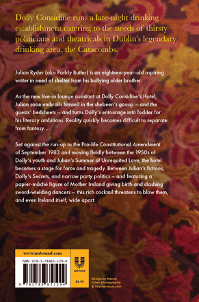 Dolly Considine inherited the Curragh House Hotel in the 1950s when she was only 18, and ran it for thirty three years before she took on Julian Ryder (aka Paddy Butler) as a lounge assistant. He is an eighteen-year-old northside Dubliner aspiring to be a writer, who allowed his friend Johnner to talk him into selling his bullying (but absent) brother’s precious jazz record collection to finance their wild summer holiday away from Ireland. But the plans go awry when his brother announces he’s coming home. Julian goes to Busarus (bus station) in the hope of a miracle and finds one when a boy (Malone) newly arrived on the bus from Derry is arrested by detectives shortly after telling Julian he has a job interview at Dolly Considine’s famous hotel.